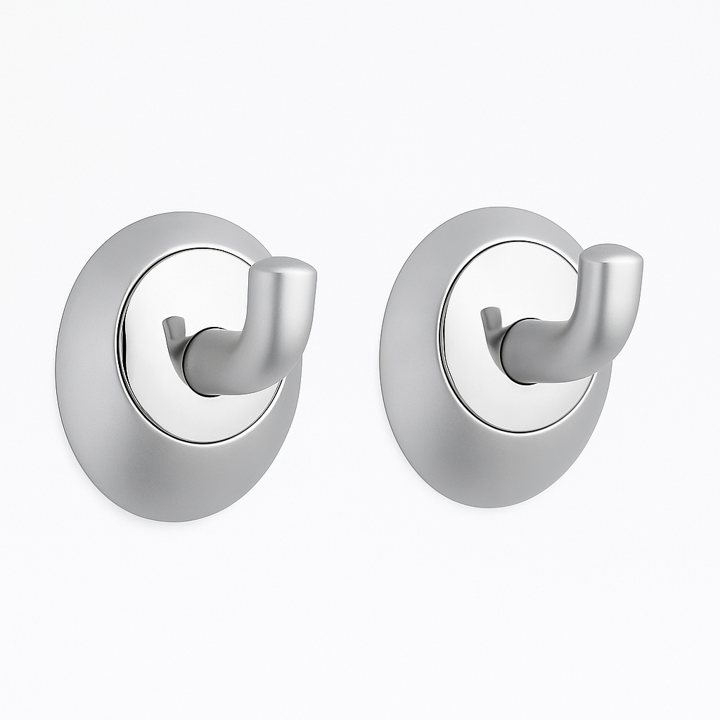 Gancho de pared doble STILE by META FORM: diseño moderno y funcional en acabado satinado. Ideal para colgar toallas o accesorios en baños elegantes. Fabricado en Italia con materiales de alta calidad.